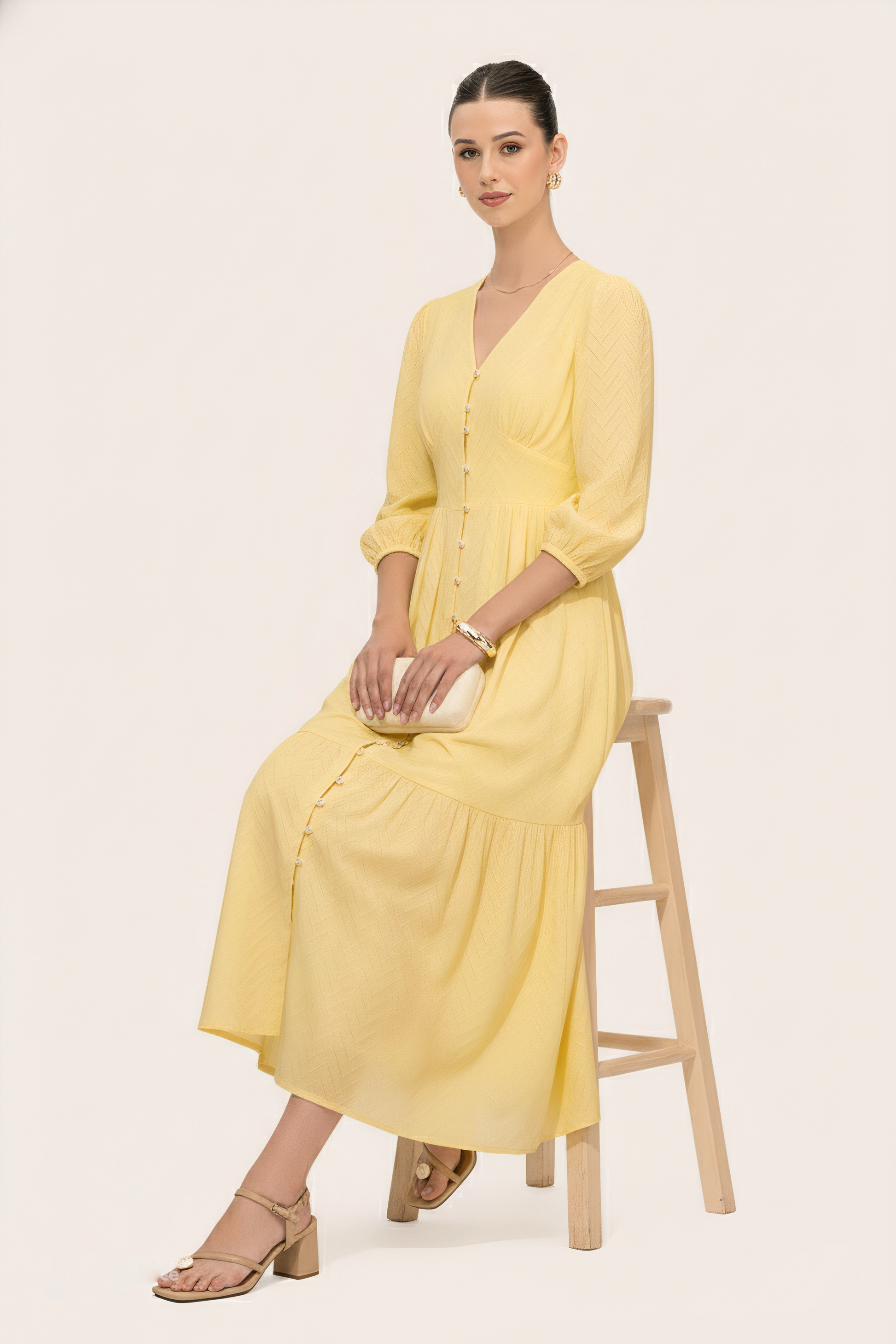 Schiffli Textured Flared Dress (Yellow)